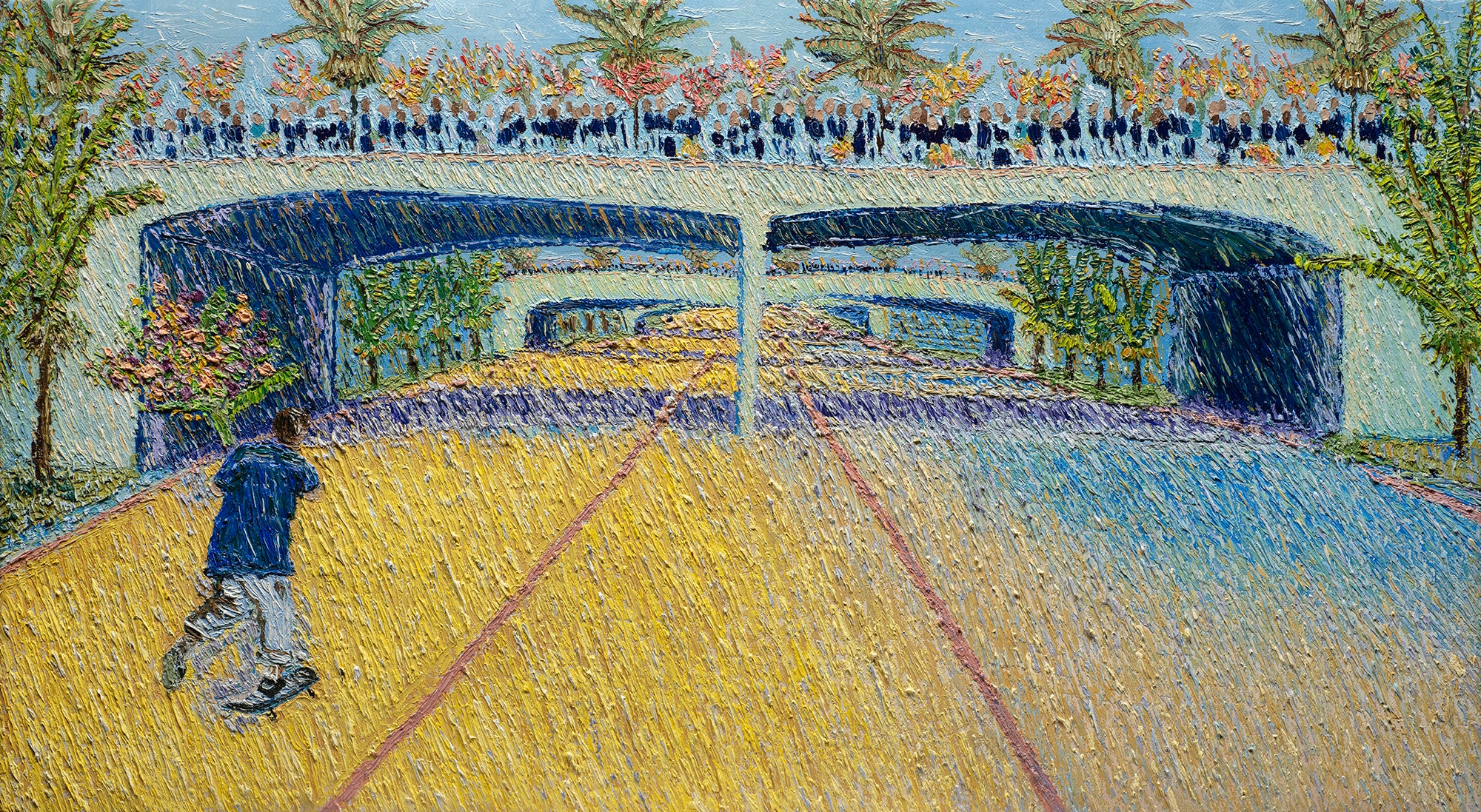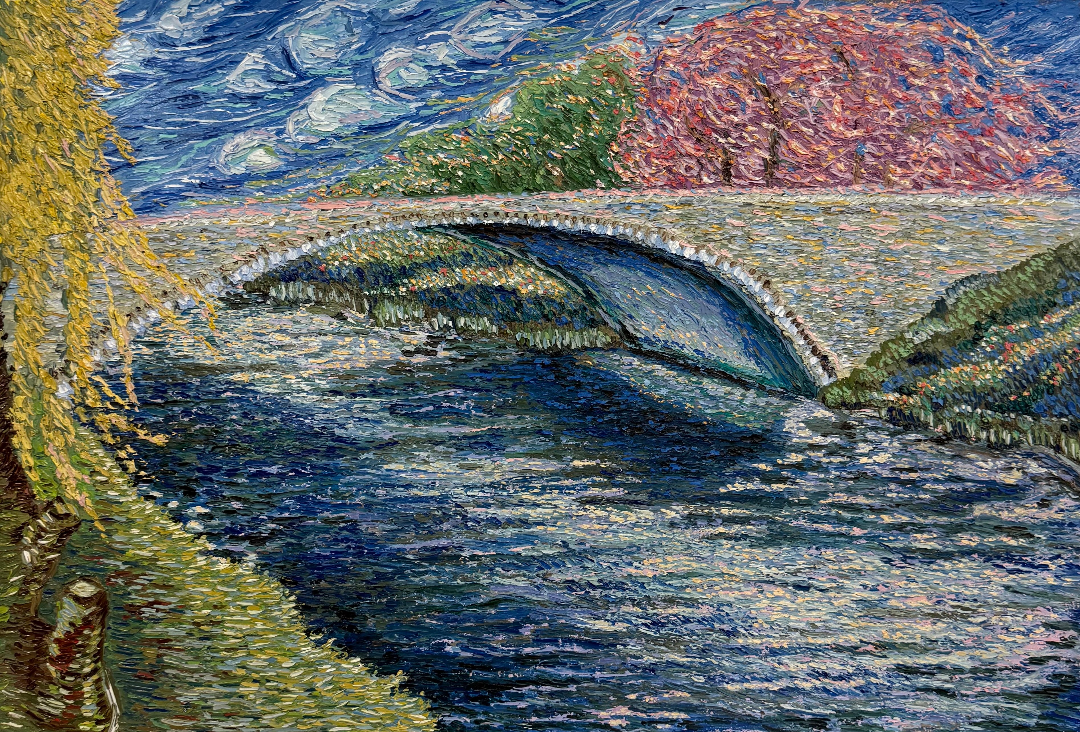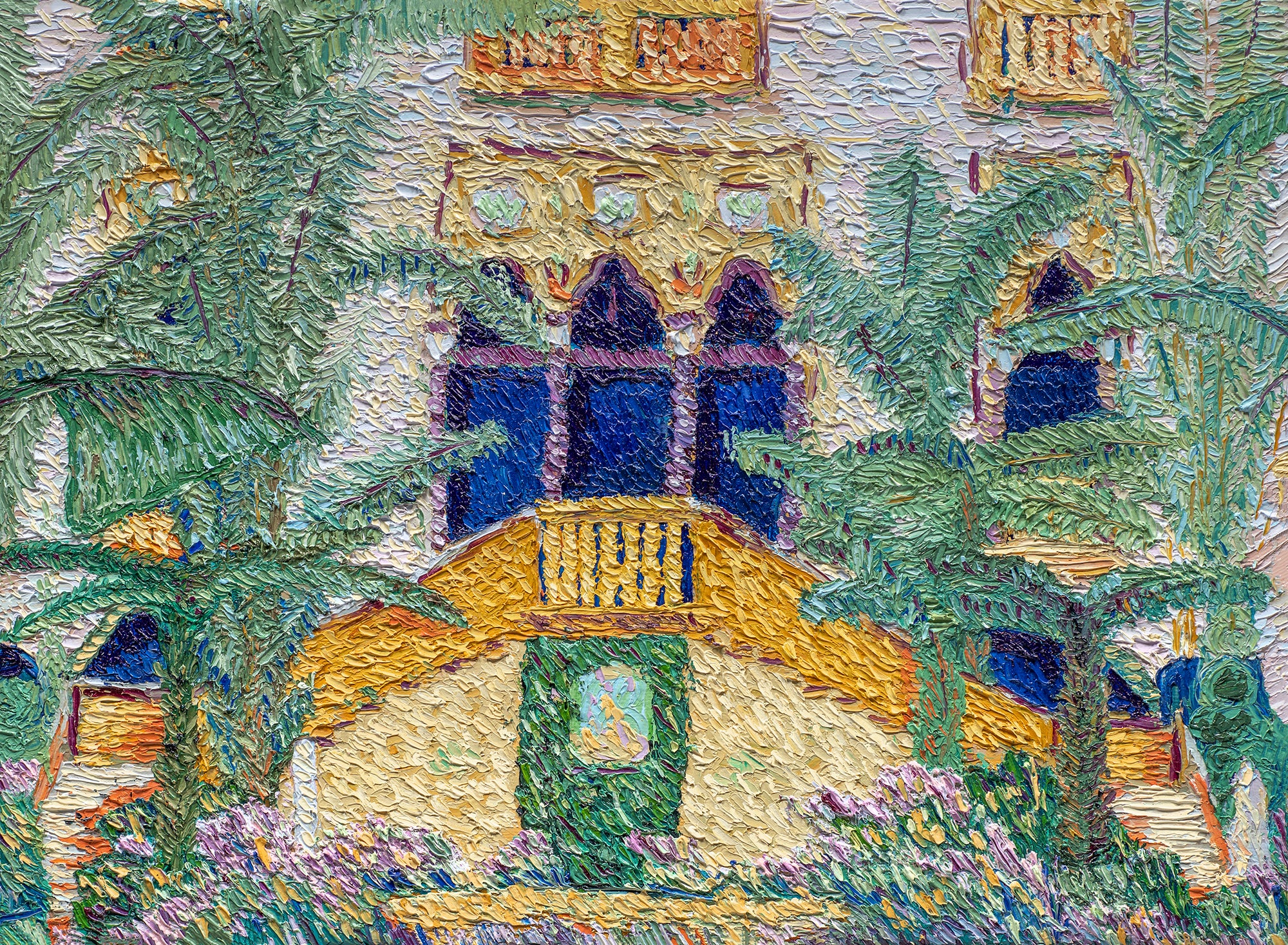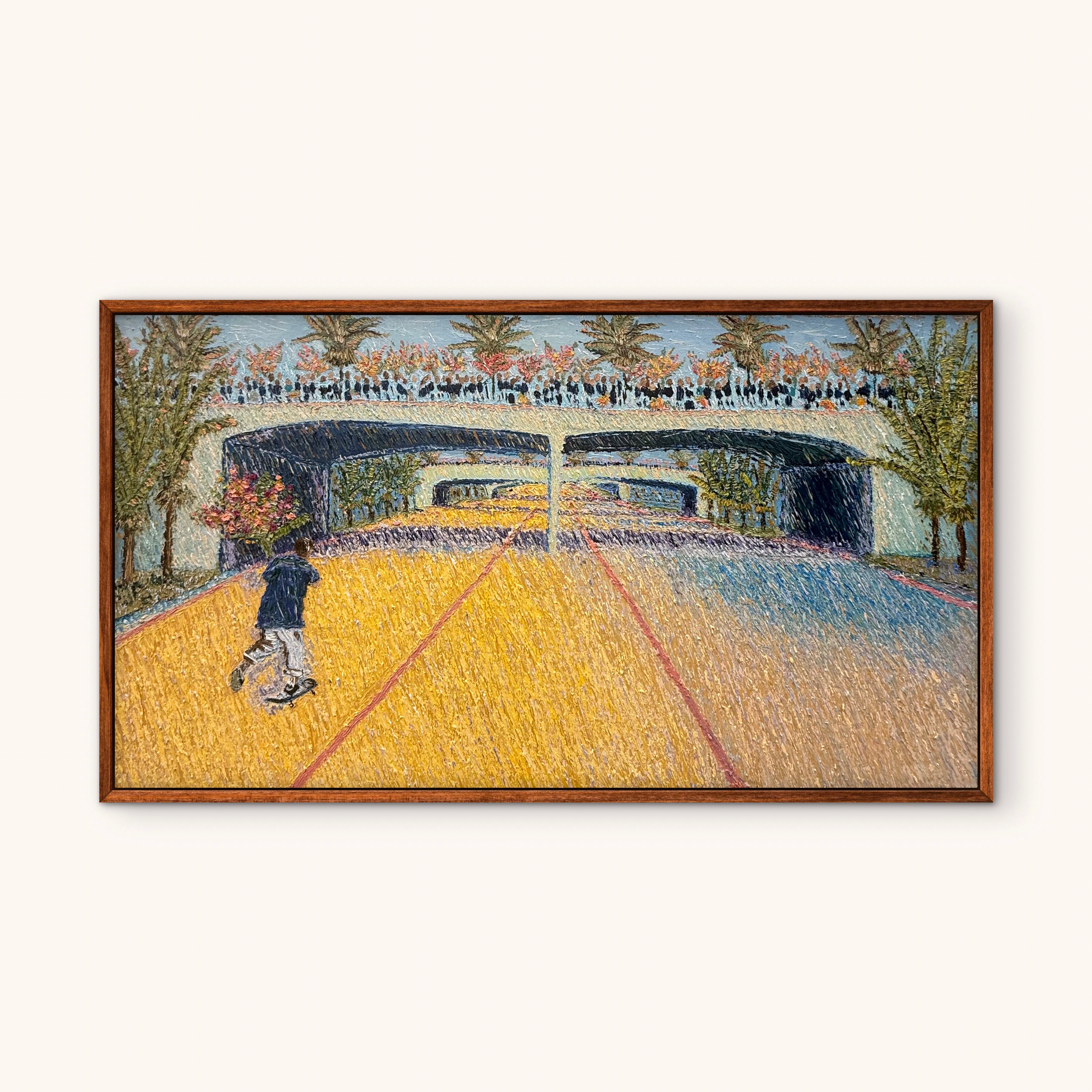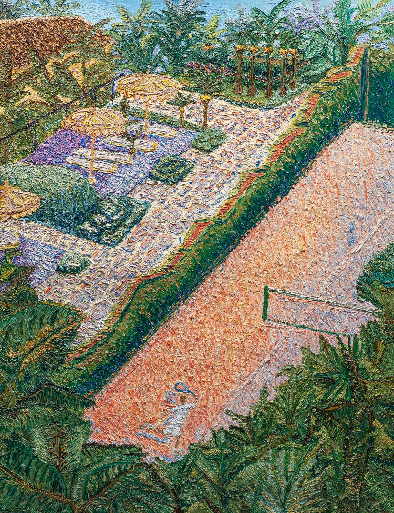 Having lived and worked in Zurich, Switzerland, Romanowsky draws from both European and American artistic traditions. The precision of her training meets the freedom of experimentation, resulting in textured, expressive landscapes that invite contemplation and unease. Influenced by Abstract Impressionism, early Impressionist gesture, and the media theories of Marshall McLuhan, she sees each painting as a living message — one that must be experienced rather than explained.
